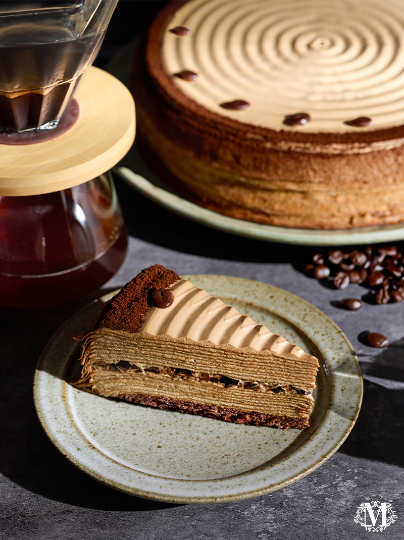 專為咖啡愛好者精心打造。咖啡千層蛋糕結合濃郁的咖啡忌廉、咖啡啫喱,以及一絲意大利榛子利口酒的芳香。採用nodi 招牌自家咖啡豆,咖啡順滑醇厚,並帶有堅果朱古力、杏仁及黑糖的香氣,層層咖啡風味的班戟與忌廉交織,底層則以黑朱古力與酥脆的法式薄脆片點綴而成。最後,再以精緻咖啡豆朱古力及 nodi 咖啡粉輕灑點綴,令每一口都呈現完美平衡的咖啡享受。