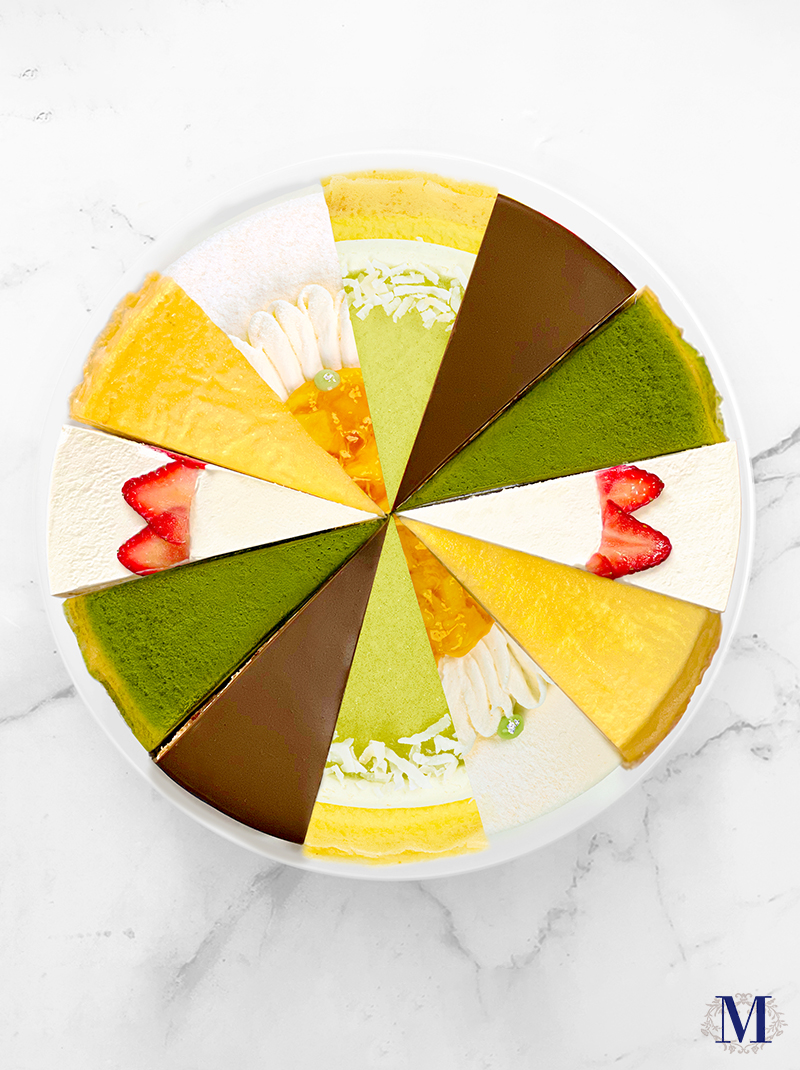 以 6 款 Lady M 皇牌件裝蛋糕組成的特別版蛋糕,包括原味、抹茶及斑蘭千層蛋糕,以及經典的士多啤梨海綿蛋糕、斑蘭芒果蛋糕及朱古力棋盤蛋糕,每款口味各有 2 件,適合每個慶祝場合及聚會,滿足各摯愛好友的味蕾享受。